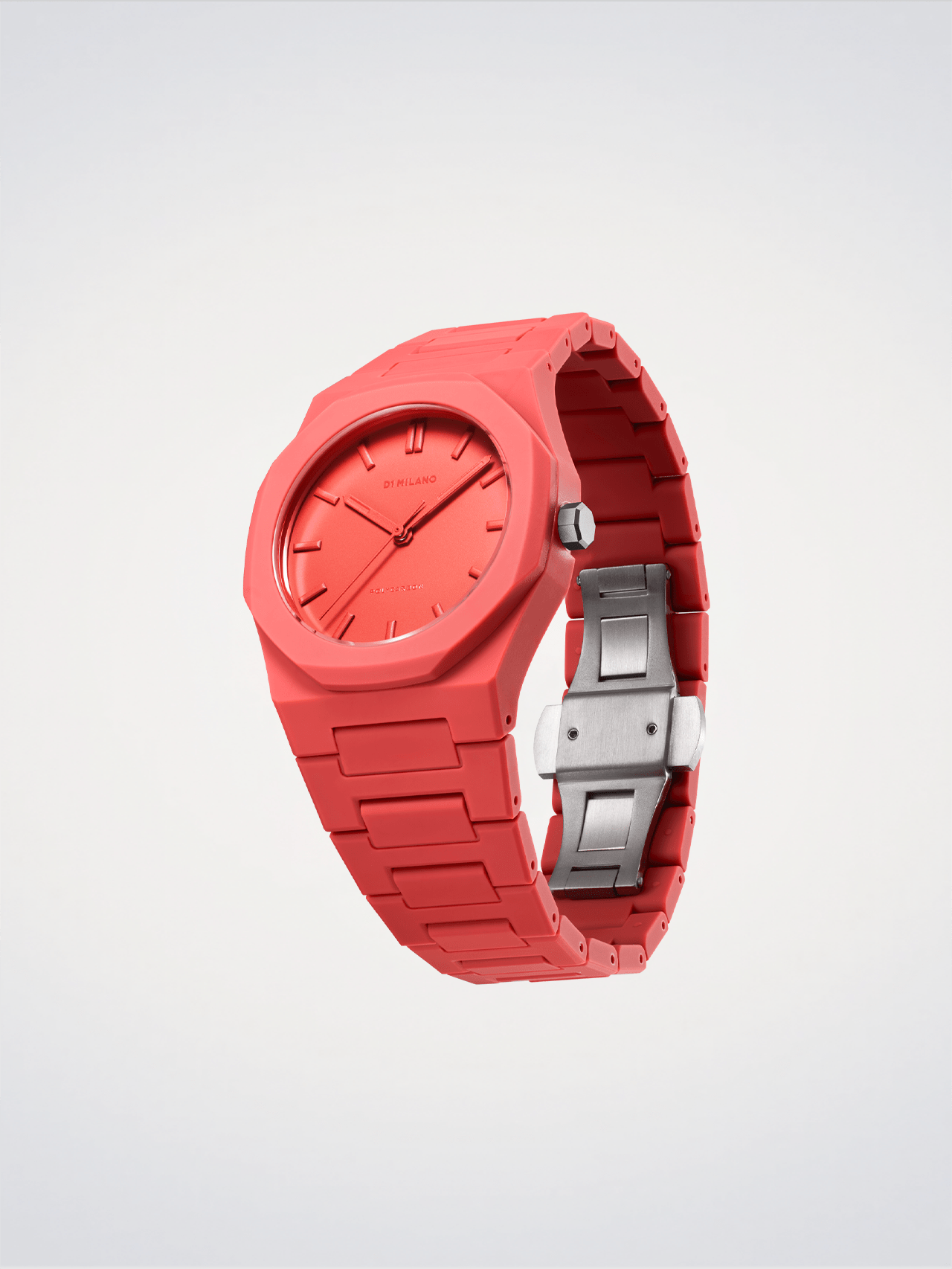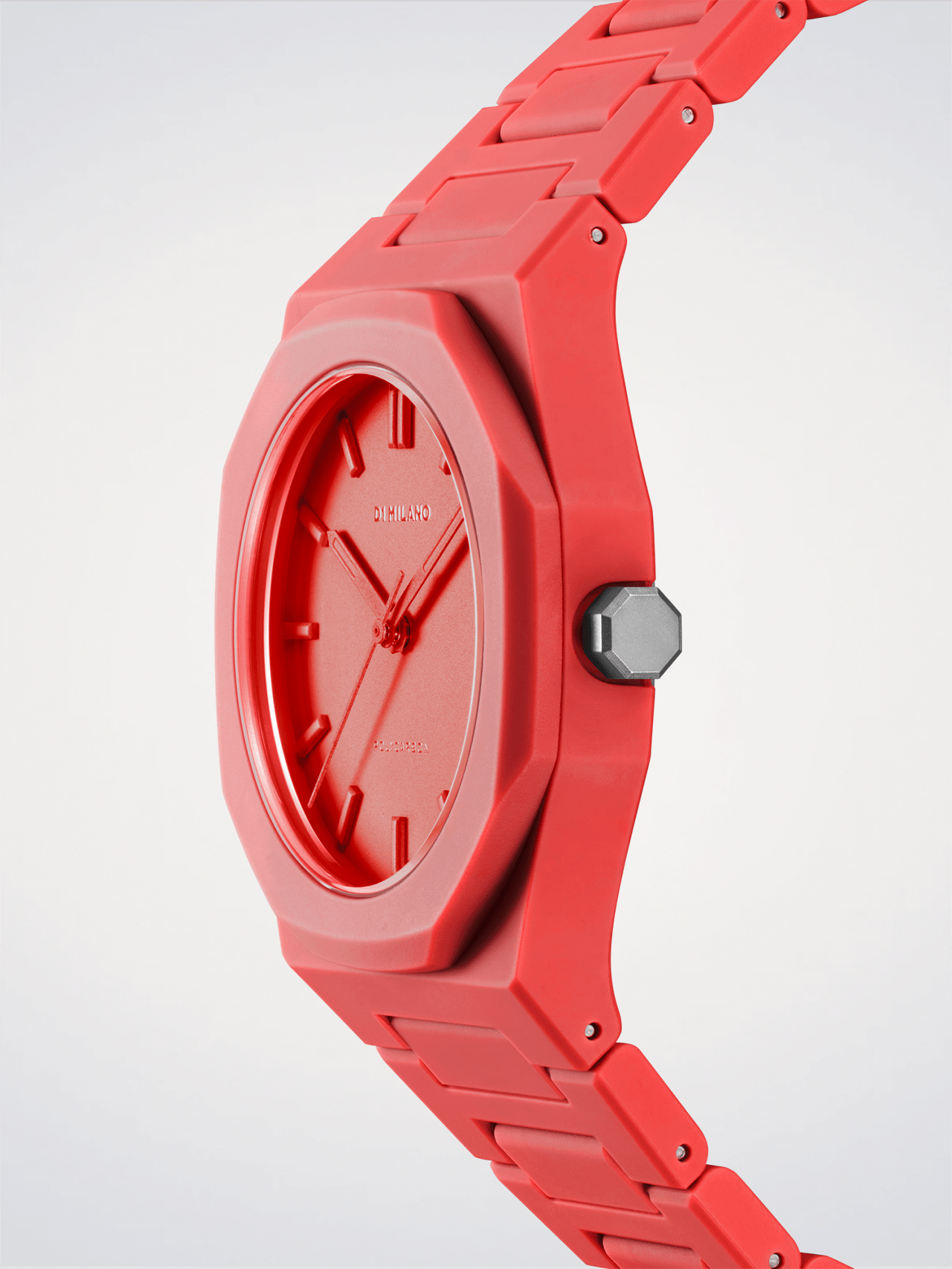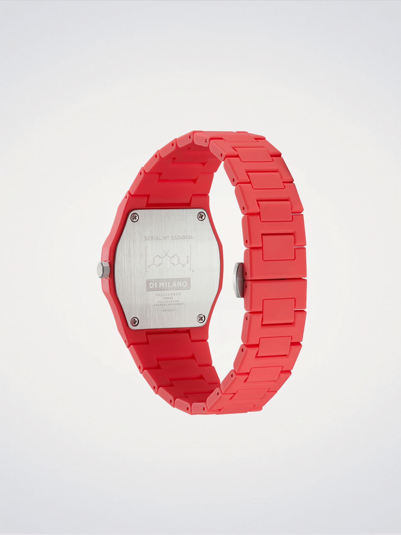 أيقونتنا الجديدة أحادية اللون الأحمر. تصميم بسيط ومبتكر، جديدة بقطر 37 مم.