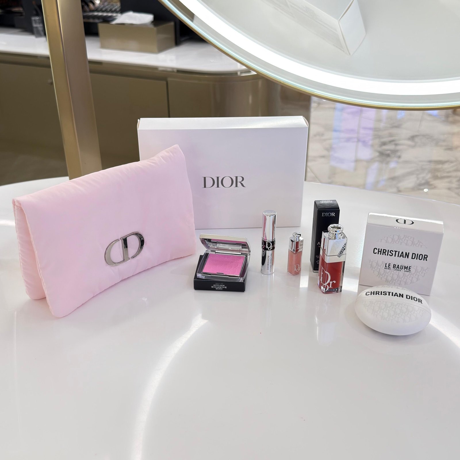 لب اويل + هاند كريم + بلشر + مسكارا هدية + سانبل هدية + شنطة هدية